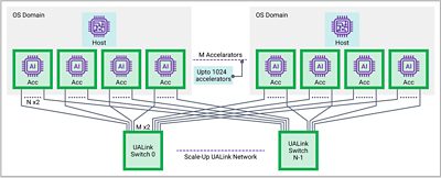 Figure 4. Scalable multi-node accelerator system with UALink high-speed interconnect. Taken from: UALink™ 200G 1.0 Specification Overview – UALink Consortium