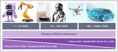 From a performance point of view, CNNs are mostly multiply accumulates, and so TOPS is a good first-order metric of performance. When designing an automotive AI system, very high performance is needed – thousands of TOPS. When designing a toy with AI capabilities, the care about is price and extremely low-power. Performance is secondary. The problem with using TOPS is that transformers are more than just multiply accumulates. There's softmax and other computations needed, so frames per second or inferences per second is a better metric. For LLMs, VLMs or VLAs, the metric is tokens per second (higher the better) or time to first token (smaller is better).