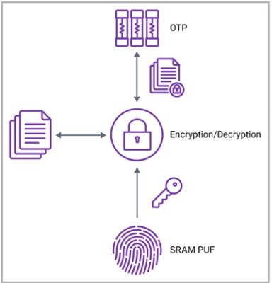 This layered defense ensures OTP contents are protected even if attackers gain physical access. The main advantage is that the root key used to derive the keys needed for encryption is never stored—it is dynamically regenerated from the silicon itself using SRAM PUF technology.