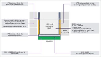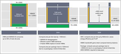 Higher‑speed SerDes, efficient custom HBM interfaces, and 3D integration help restore balance. By increasing bandwidth per pin and per watt, fewer memory stacks can support larger compute footprints. Multi-die design further improves energy efficiency per FLOP by shortening interconnect distances and enabling denser packaging.