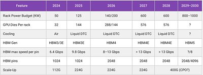 By the end of the decade, AI systems will support unprecedented compute density at the rack level. Megawatt‑class racks become feasible through the convergence of multi-die design, next‑generation HBM, and high‑bandwidth scale‑up and scale‑out fabrics.