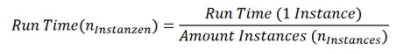 The division and the associated reduction of the Run Time can be done as many times as desired. The test run can theoretically be divided among as many instances as needed. The Run Time per instance is reduced according to the following formula: