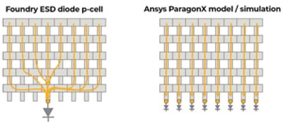 The problems of unreasonably large or low (by ~100 times) resistances between ESD diodes and pads or power clamps, and unphysical current densities in the interconnects, usually happen when fabless semiconductor design companies use ESD diode parametrized cells (p-cells) provided by the foundries. The cells are designed, verified, and qualified by the foundries and should be good. However, the quality of the connections of these ESD cells to the power nets and to IO nets can be poor. Such poor connections can lead to high resistances and current densities, which lead to big ESD problems. That’s why, even when ESD cells themselves are high quality, the resistance and current density checks on the complete ESD network are required.