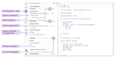 As shown in Figure 2, an ASIP configuration defines a combination of the processor model project file, the application project file, the compiler configuration, the instruction set simulator, and settings for native debugging. From the ASIP configuration view, icons allow to directly launch compilation or the debugger.