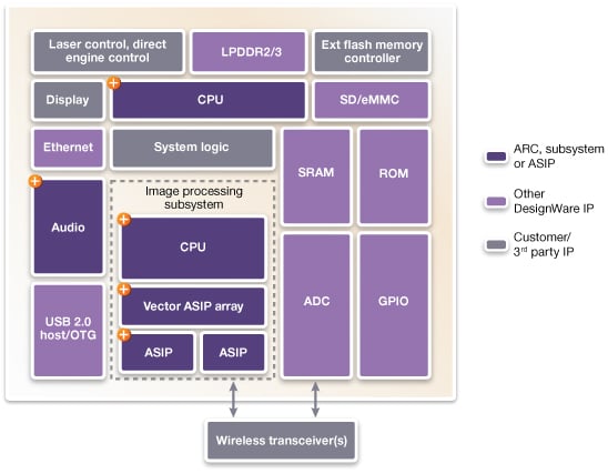 Printing, scanning, copying, even faxing – multi-function printers can do it all. For each multi-function printer model, image processing algorithms, performance requirements and functionality vary, calling for a programmable solution to allow for wide deployment of any SoC. Performance requirements are high in order to quickly process high-resolution images, making high-performance controllers, and specialized processors tuned for image-processing tasks a necessity. Synopsys’ high-performance DesignWare ARC processors and ASIP tools address these challenges.