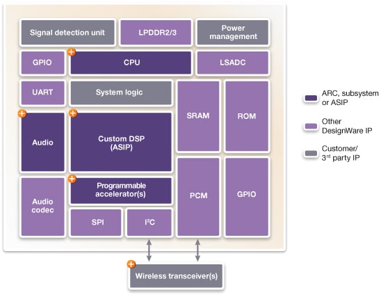 Today’s hearing aids use highly-specialized signal processing algorithms to process input from a multi-microphone array, which requires an efficient controller along with specialized signal-processing units for real-time execution. Synopsys’ DesignWare ARC processors and ASIP tools provide the functionality and performance needed while maintaining low power consumption for these battery operated hearing aids.