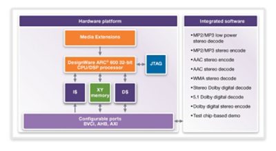 ARCオーディオ・ソリューションは、別売またはDesignWare SoundWave Audio Subsystemの一部として販売され、システム・オンチップ(SoC)設計に採用するハードウェア、ソフトウェア、プロトタイピングを統合する包括的な検証済みのオーディオ・サブシステムを提供します。このソリューションには次のハードウェアおよびソフトウェア・コンポーネントが含まれています。