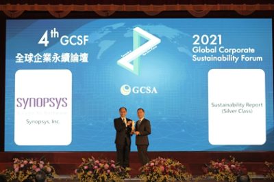 (台北訊) 新思科技(Synopsys)近日獲頒「全球企業永續獎(GCSA)」之永續報告銀牌獎(Sustainability Report, Silver Class),肯定新思科技在企業經營之外,持續深耕台灣、追求零碳排放的未來、致力營造包容與多樣(inclusion & diversity)的企業文化 、及善盡企業公民責任(Corporate Social Responsibility),尤其疫情期間主動在公司內部成立防疫小組,積極守護並促進員工的身心健康。